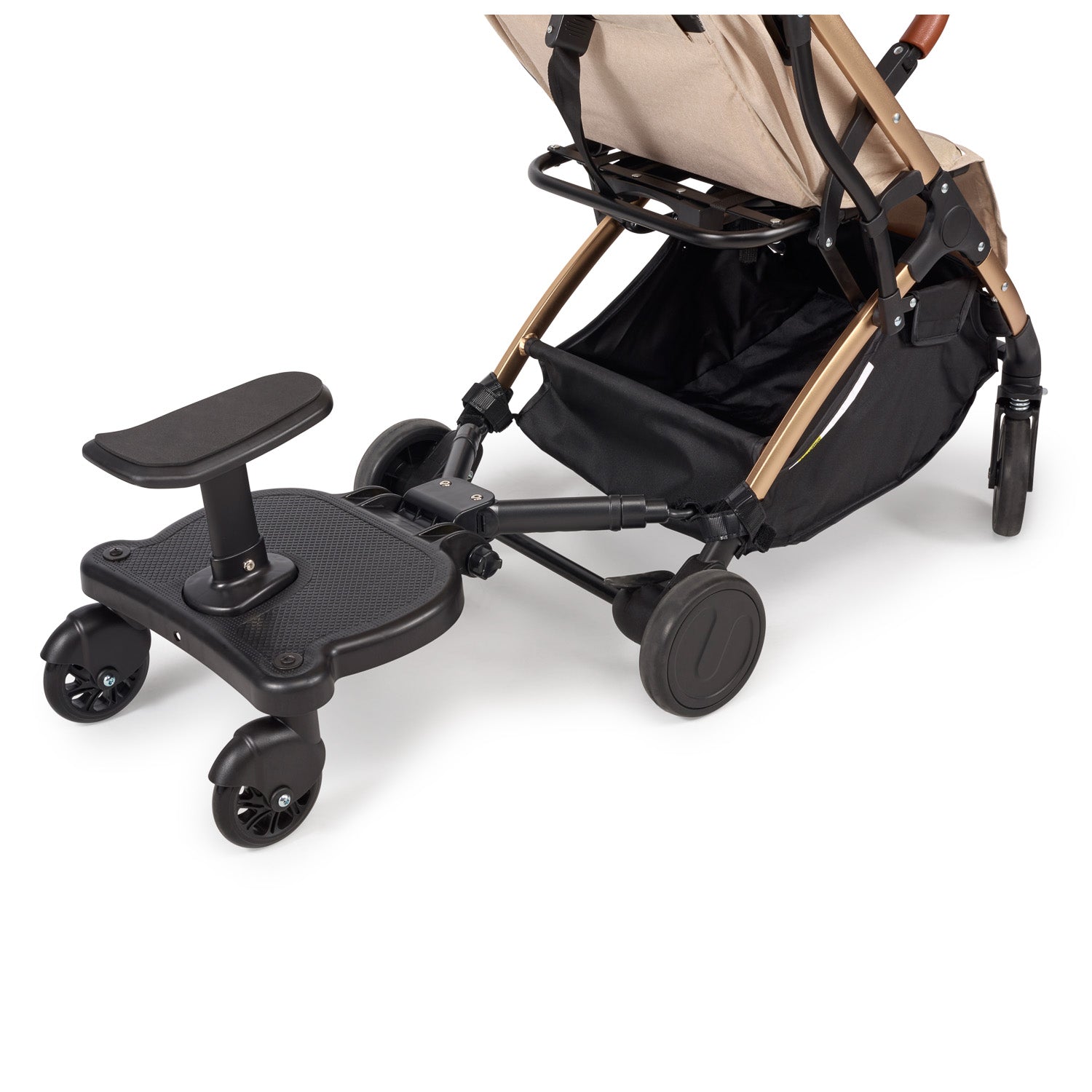 This is exactly the kind of daily situation where the Buggy Board with Seat becomes a lifesaver. It lets your older child hop on and ride along safely behind the stroller, either standing or sitting. It gives them a sense of independence while keeping them close to you.