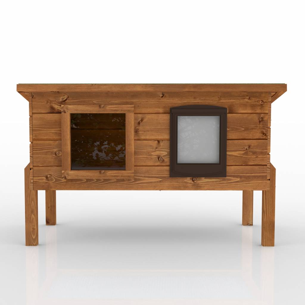 The cat house is made from strong materials that can last a long time. It’s big enough for one or two cats, so they don’t feel cramped. Plus, the roof can be taken off, which makes cleaning the inside easy and quick.