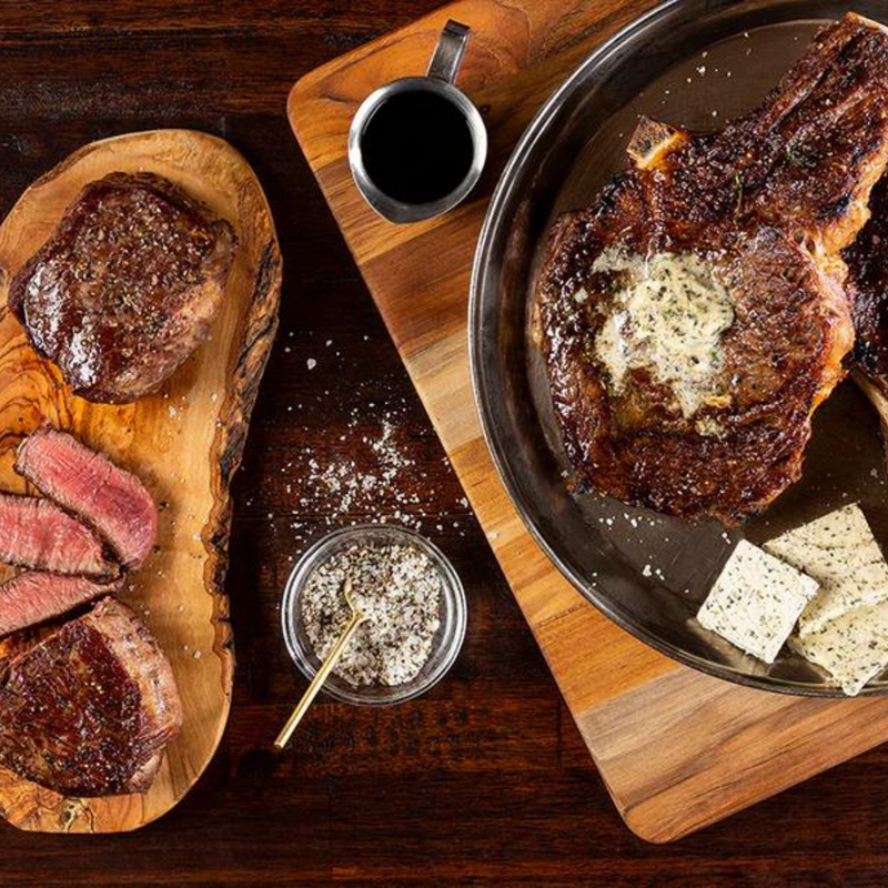 A bold surf-and-turf-style package featuring both a 20–22?oz bone-in ribeye and a 6–10?oz filet in one box. Wet-aged USDA?Prime, hand-cut, fully packed with attitude.
