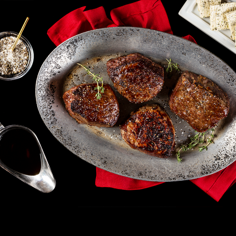 A box of four perfectly sized filet mignons—8?oz each, wet-aged, hand-carved, and flash-frozen with USDA?Prime pedigree.