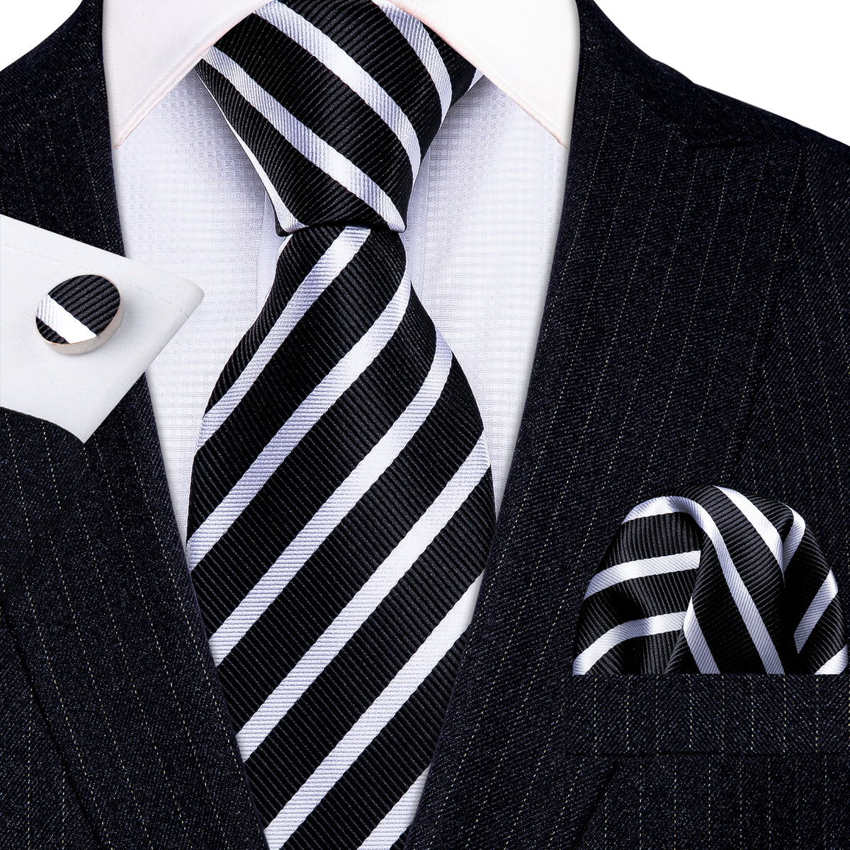 In 2025, necktie width takes a more modern turn. We’re seeing a shift toward slimmer, sleeker profiles—not skinny, but not wide either. This balanced look flatters more body types, works well with slim-fit shirts, and transitions seamlessly from formal to smart-casual.Black & White Striped Silk Tie Set. A clean monochrome palette, classic diagonal stripes, and a modern-width silhouette make this tie a go-to for versatile styling. It nods to tradition while feeling refreshingly contemporary. Whether you're dressing for a Monday boardroom meeting or a weekend rooftop dinner, this tie fits the moment.